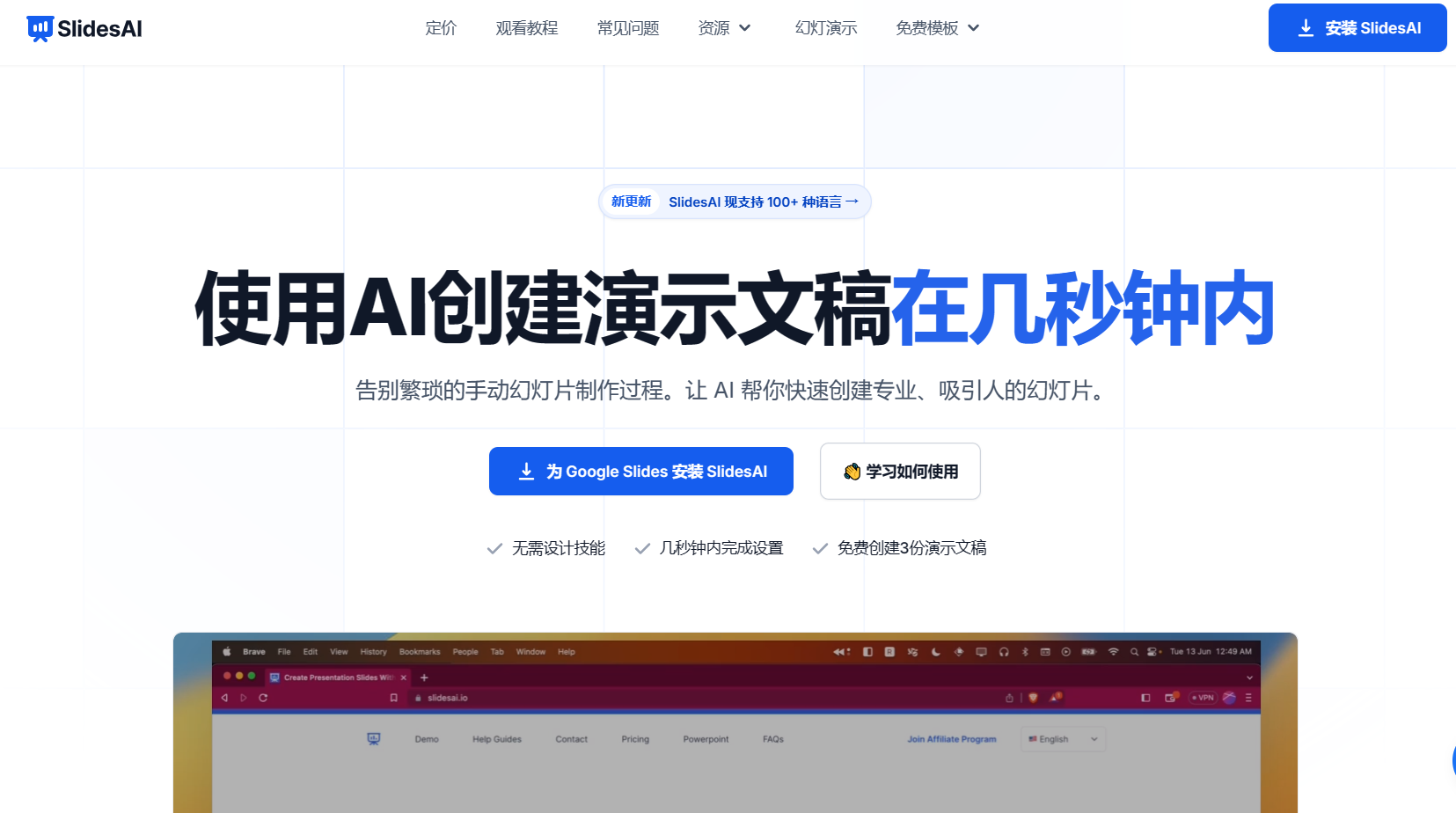 SlidesAI是一个创新的AI演示文稿生成工具,它能够快速从文本创建专业且吸引人的幻灯片,极大简化了演示文稿的制作过程。