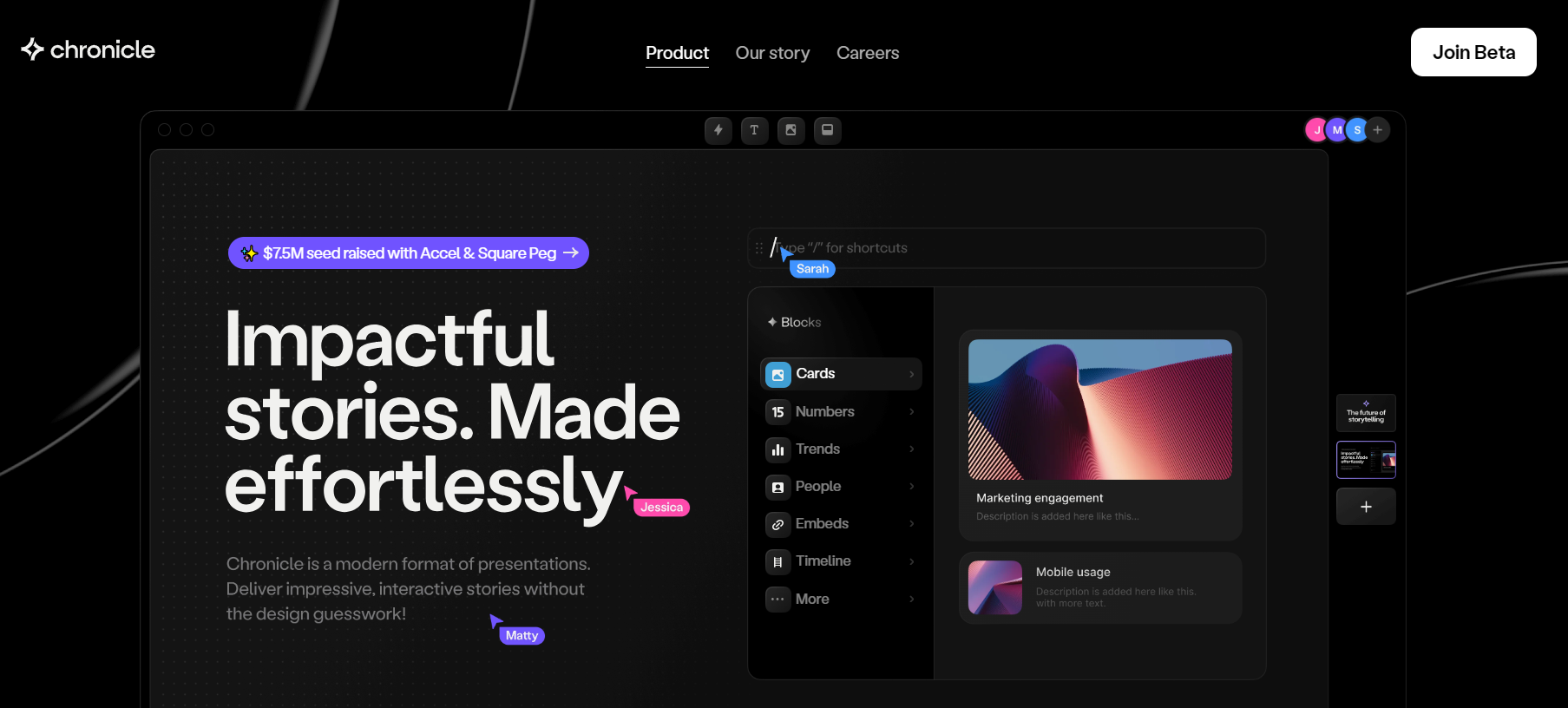 Chronicle是一种现代化的演示格式,它使用户能够轻松创建印象深刻、交互性强的故事性演示。